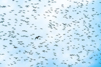 En flokk med måser som seilte på vinden.